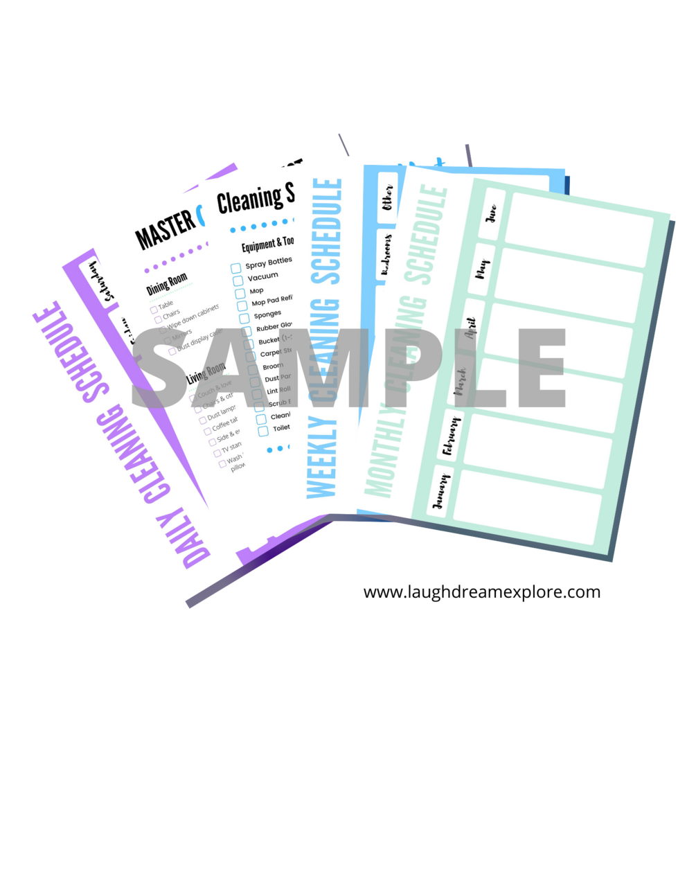 - Monthly Cleaning Schedule (with month names, 3 colors)